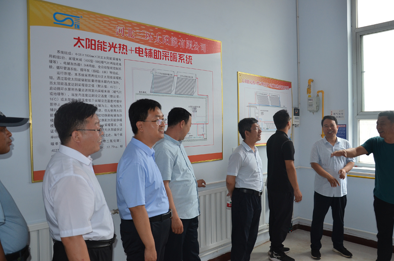 今日(6.8號)下午,石家莊市雙代辦領(lǐng)導(dǎo)攜各縣雙代辦領(lǐng)導(dǎo)蒞臨我公司考察太陽能+壁掛爐采暖模式。我公司2020年在邢臺各縣推廣太陽能+采暖共計8000余戶,在秦皇島各縣推廣7000余戶。眾領(lǐng)導(dǎo)對于我公司近年來在煤改氣、煤改電、煤改太陽能工作中做出的貢獻,給予了高度評價。